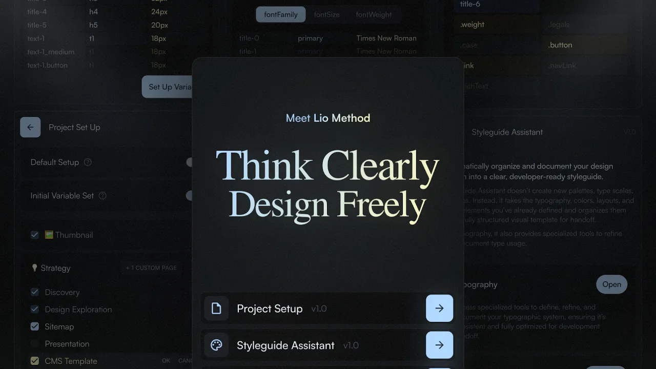 The method is supported by Lio Toolbox, a Figma plugin that automates setup, generates documentation, and keeps everything organized so you can focus on designing, not maintaining systems.